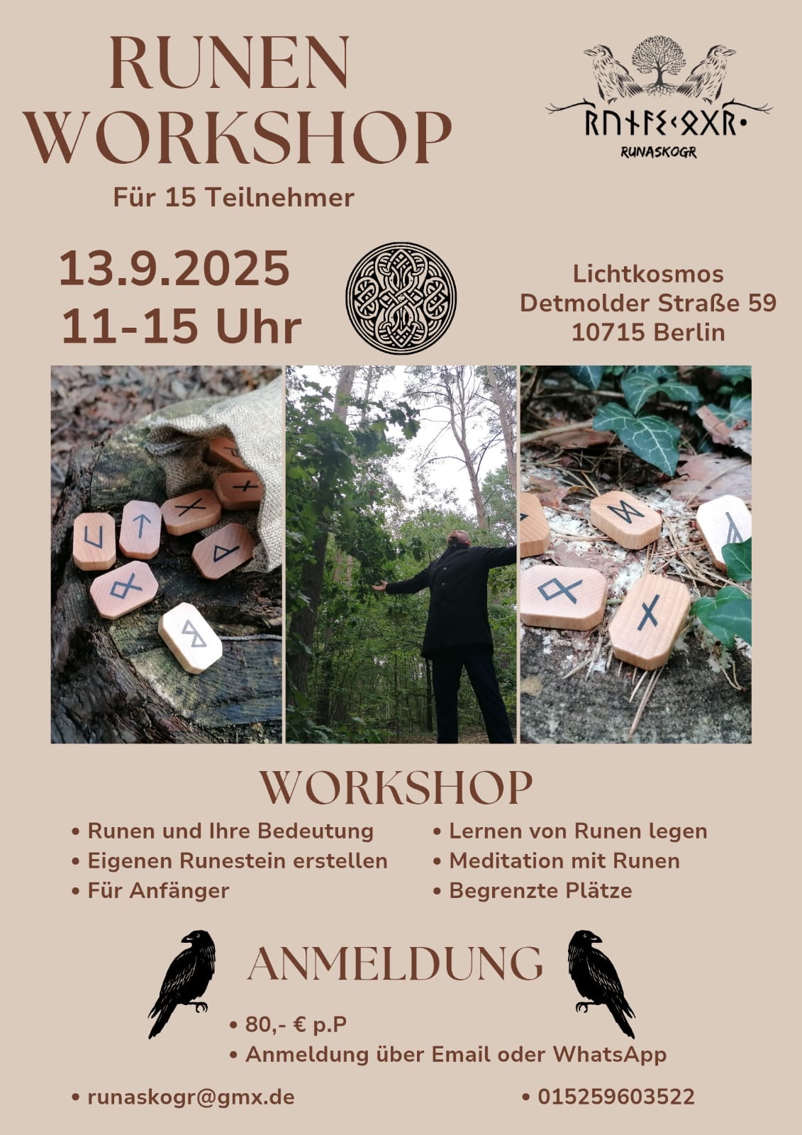 In diesem Workshop tauchen wir gemeinsam in die faszinierende Welt der Runen ein. Du lernst: 1. Die Bedeutung der Runen und ihre Symbolik 2. Wie ...